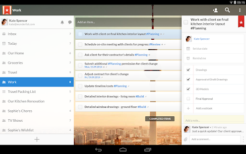 • New, more intuitive design and reengineered apps make Wunderlist feel faster than ever before.